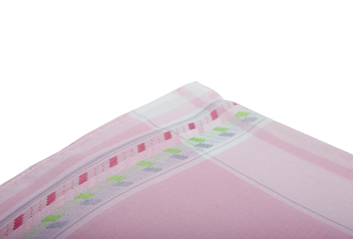 - Zakdoeken zijn rondom afgewerkt met een smal zoompje